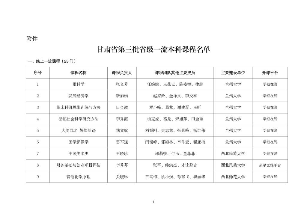 3377体育获批甘肃省第二批省级一流本科课程拟认定名单
