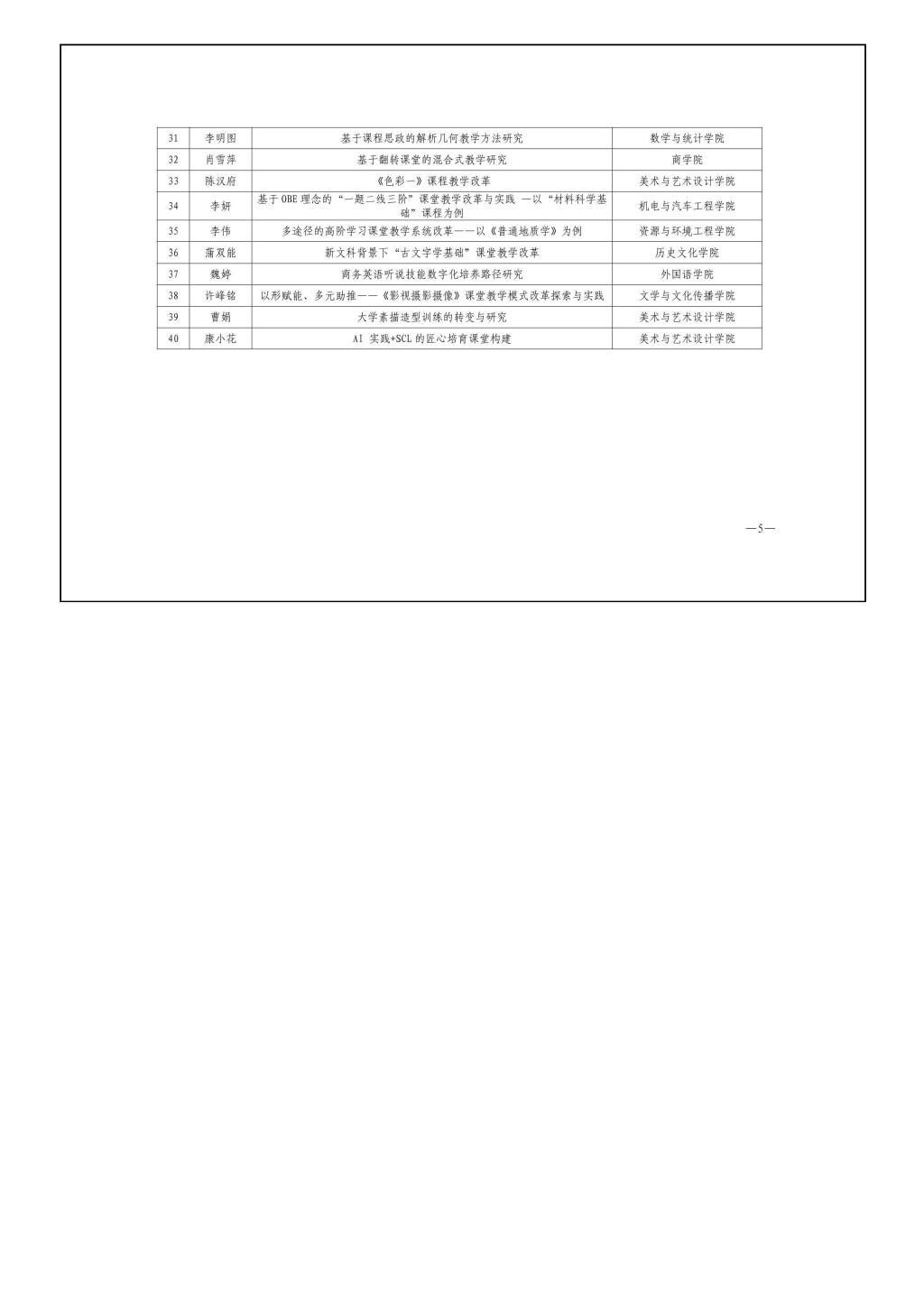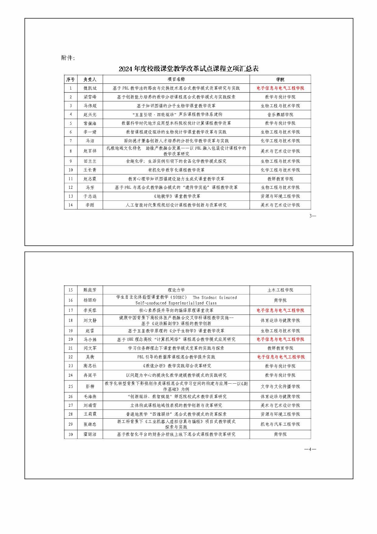 2024年度校级课堂教学改革试点课程立项结果