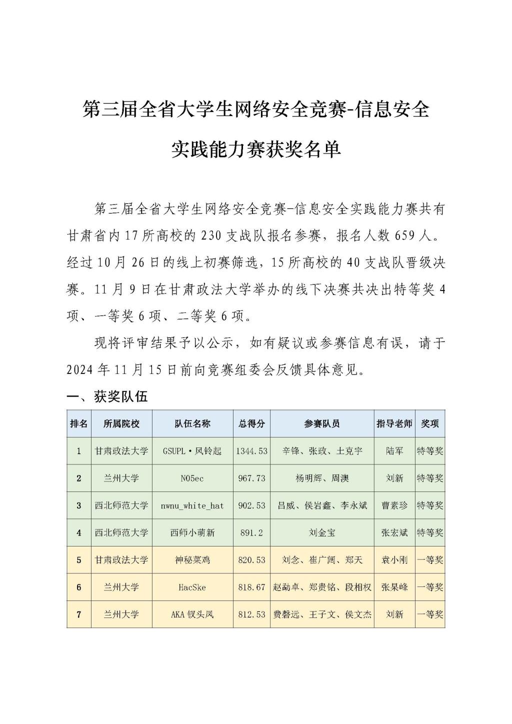 3377体育师生在第三届全省老员工网络安全竞赛-信息安全实践能力赛获奖