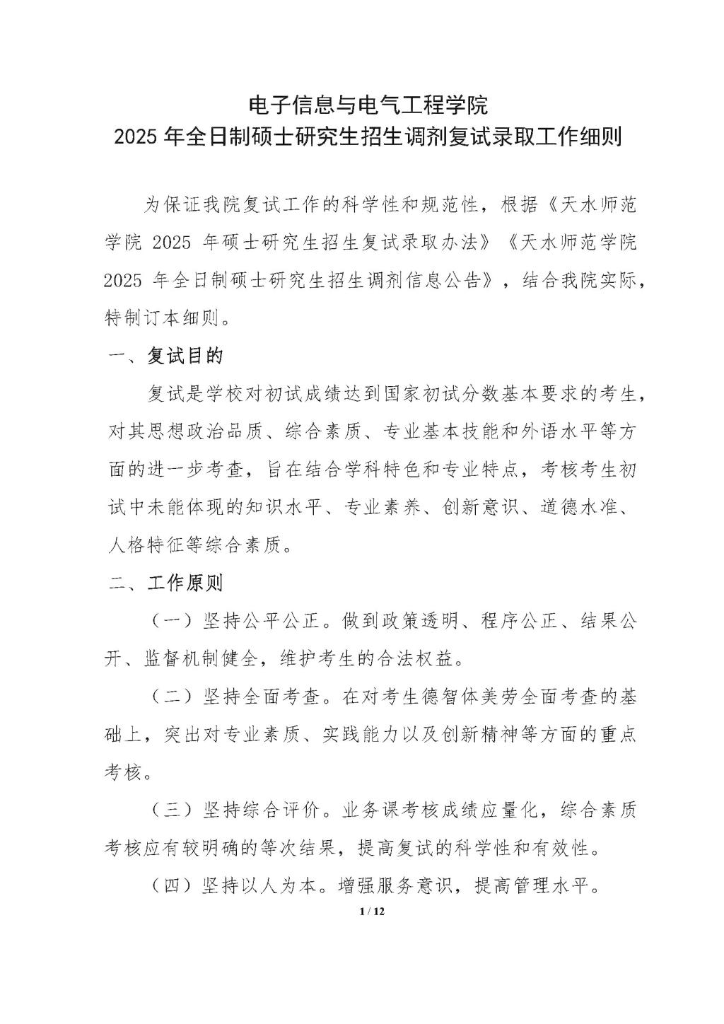 2025年全日制硕士研究生招生调剂复试录取工作细则