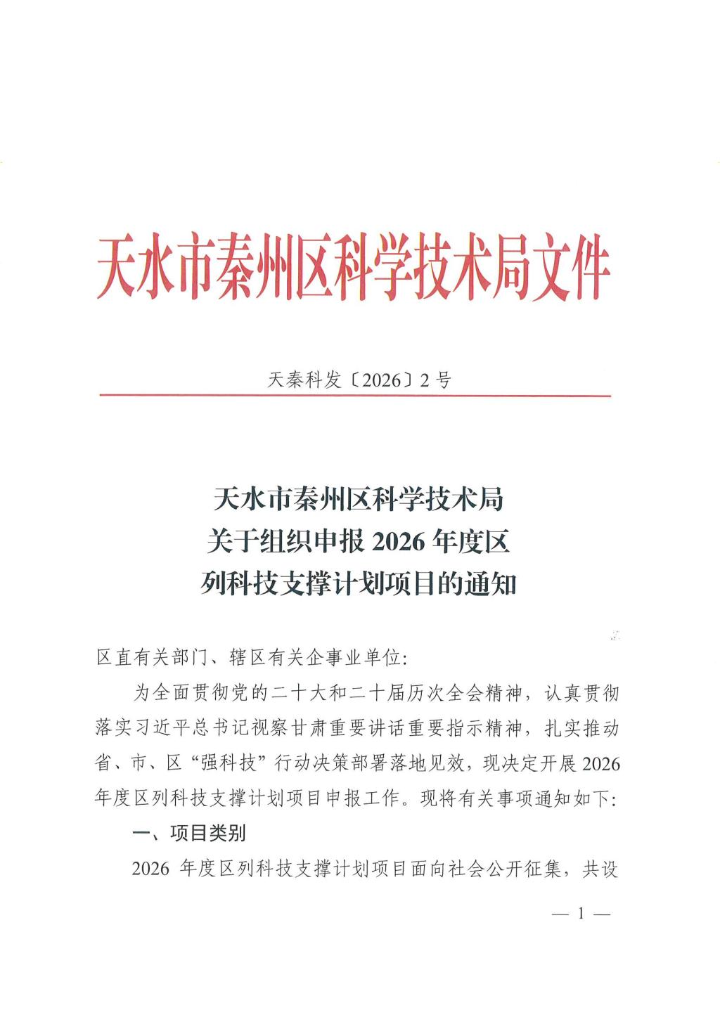 现将秦州区科技局2026年度区列科技支撑计划项目的通知再转发大家,请老师们积极申报。公司项目申请截止日期:2026年4月24日17:00,逾期系统自动关闭,不再推荐。