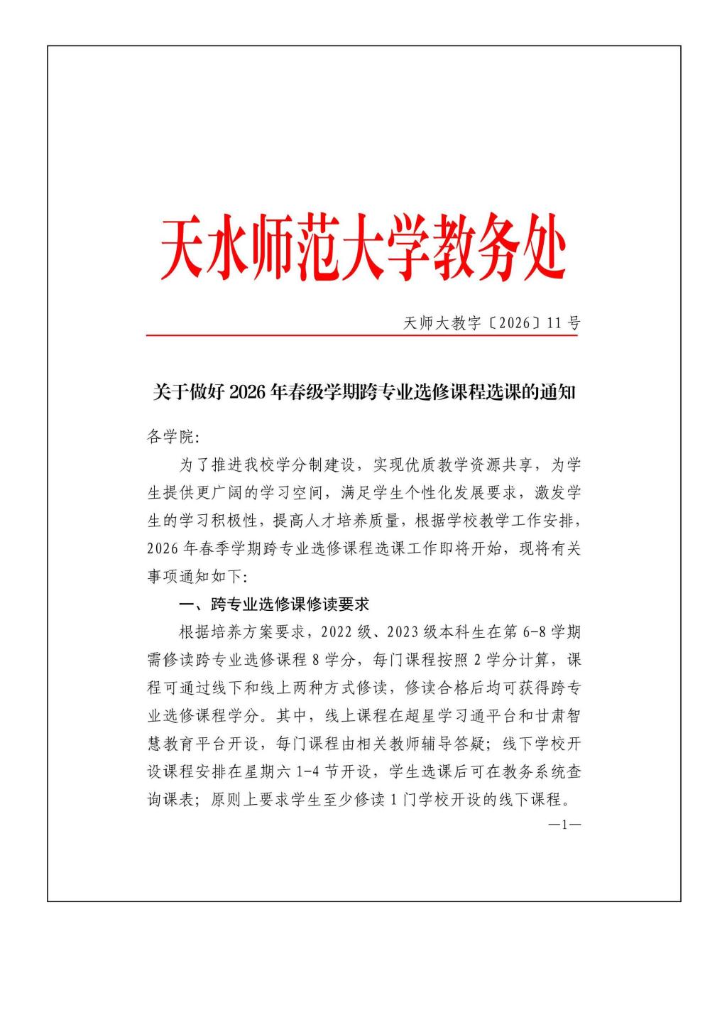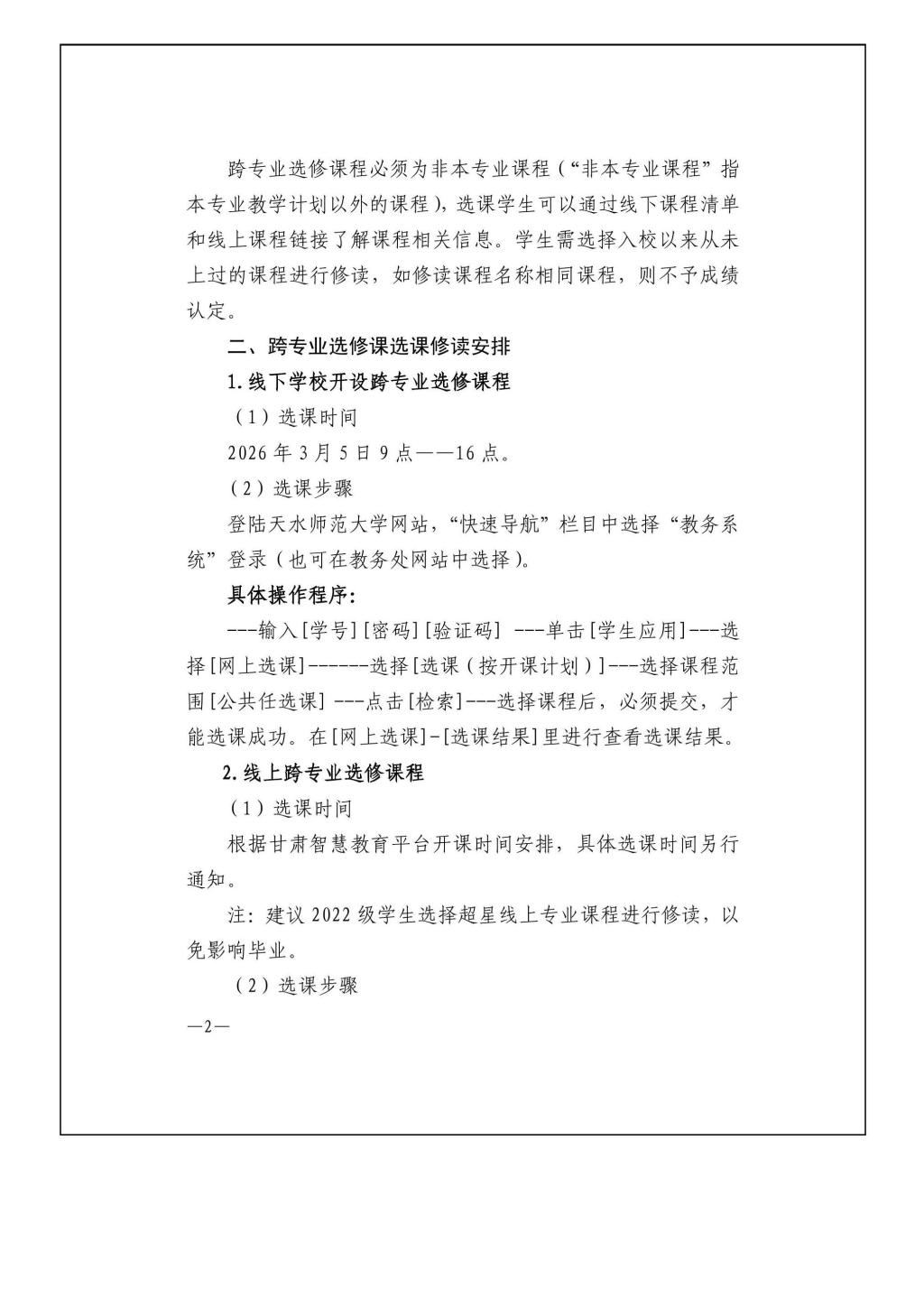 关于做好2026年春级学期跨专业选修课程选课的通知