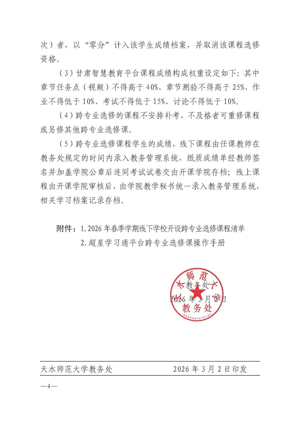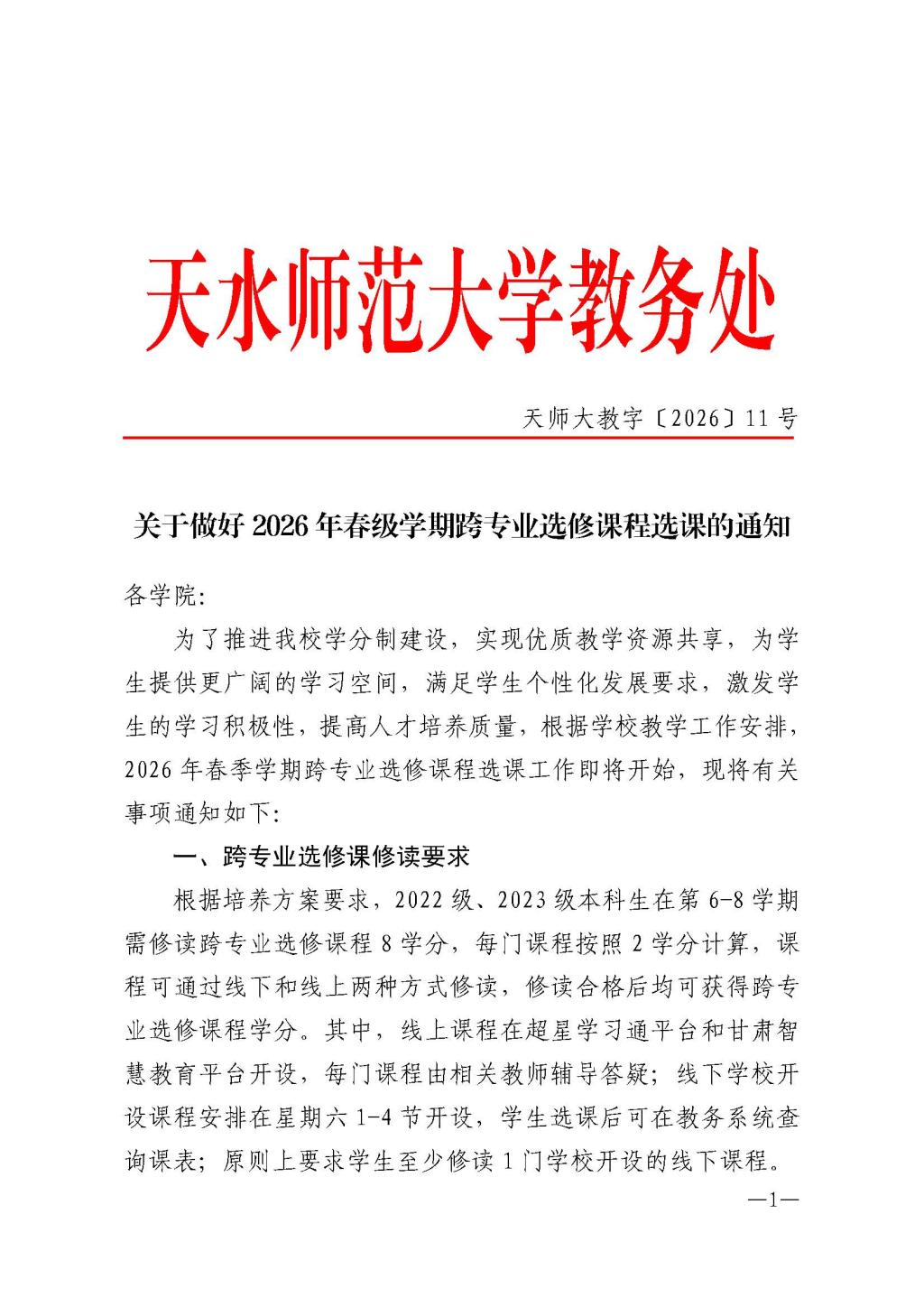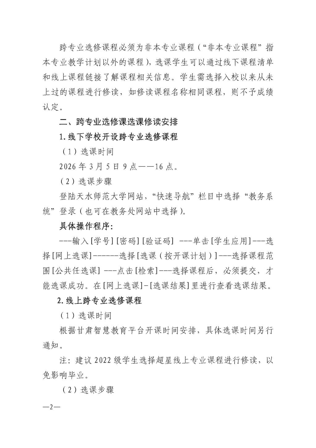 关于做好2026年春级学期跨专业选修课程选课的通知