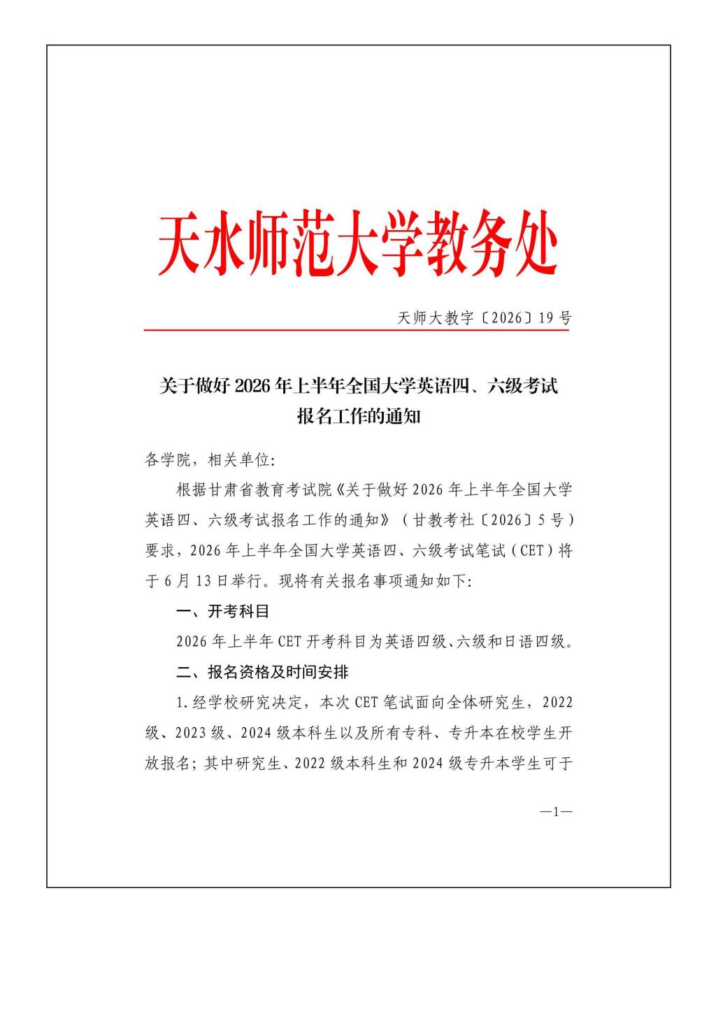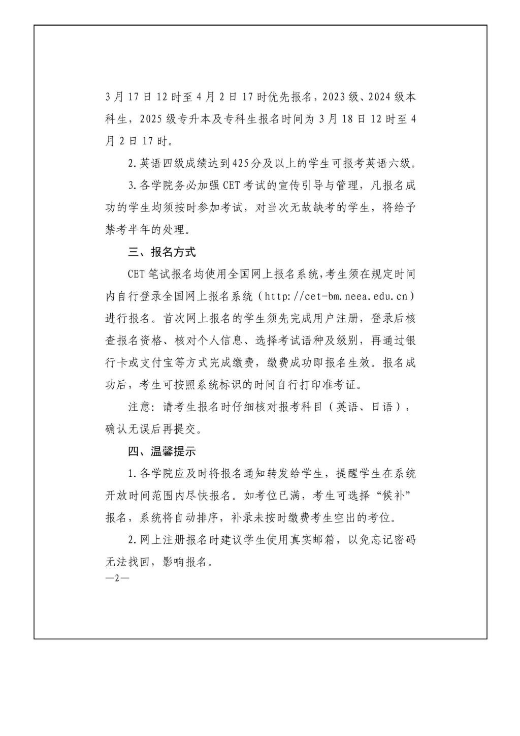关于做好2026年上半年全国大学英语四、六级考试报名工作的通知