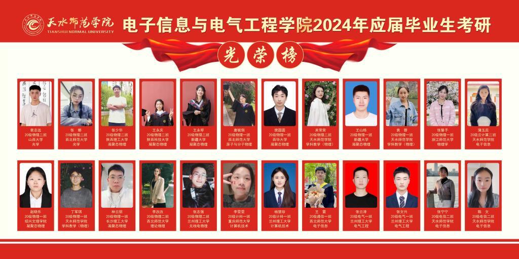 设有电子信息、学科教学(物理)、能源动力3个专业硕士学位点;电子科学与技术为省级重点学科,物理学为校级重点支持学科;公司拥有集成电路封装测试教育部工程研究中心、甘肃省集成电路产业研究院、甘肃省全固态激光工程研究中心、甘肃省集成电路智能装备行业技术中心和甘肃省工业智能电器行业技术中心;ICT产教融合创新教学示范中心和电子技术与智能控制实验教学示范中心两个省级实验教学示范中心,中国制造业民营企业500强的天水华天科技有限公司为省级研究生联合培养基地。